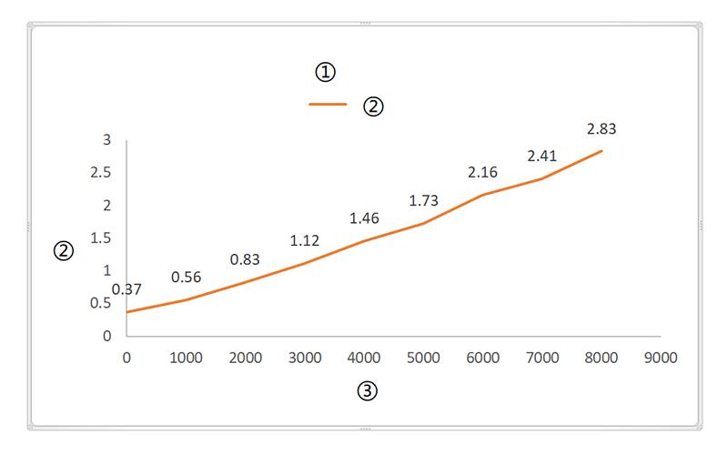 ① Carga VS Corriente; ② Corriente (A); ③ Carga(N); ④ Carga VS Velocidad; ⑤ Velocidad (mm/s)
