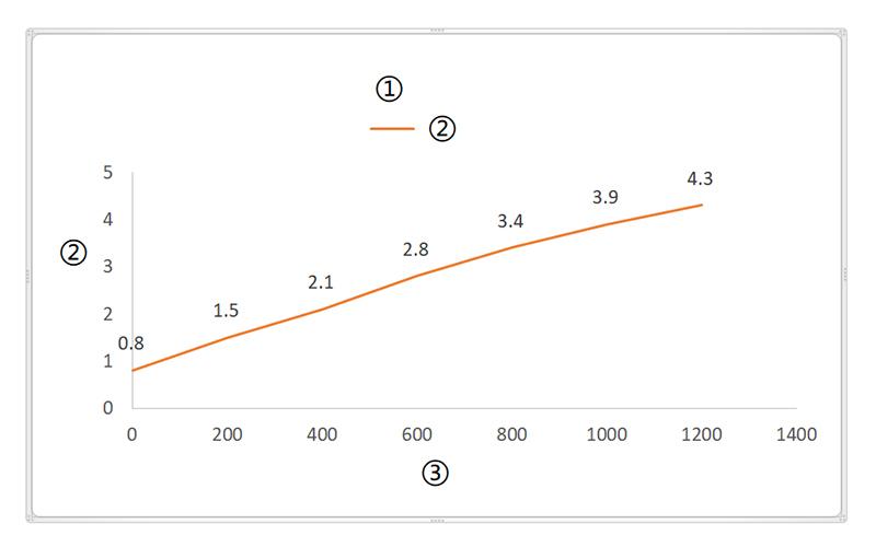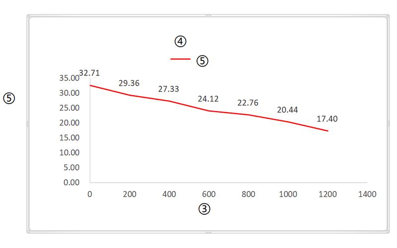 ① Carga VS Corriente; ② Corriente (A); ③ Carga(N); ④ Carga VS Velocidad; ⑤ Velocidad (mm/s)